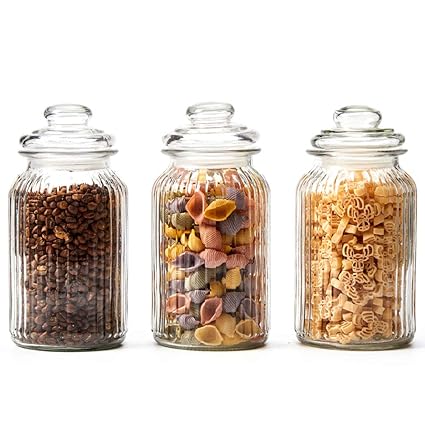 Comsaf Bocal Conservation Transparent 900ml Verre Lot De 3 Boite