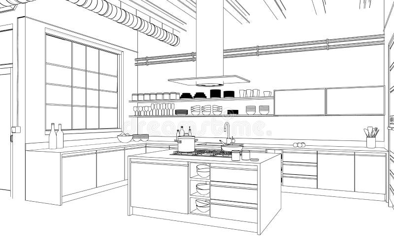 Plan Moderne De Dessin De Cuisine De Conception Interieure