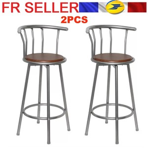 New 2pcs Tabouret Bar Fauteuil Marron Acier Chaises Hautes Cuisine