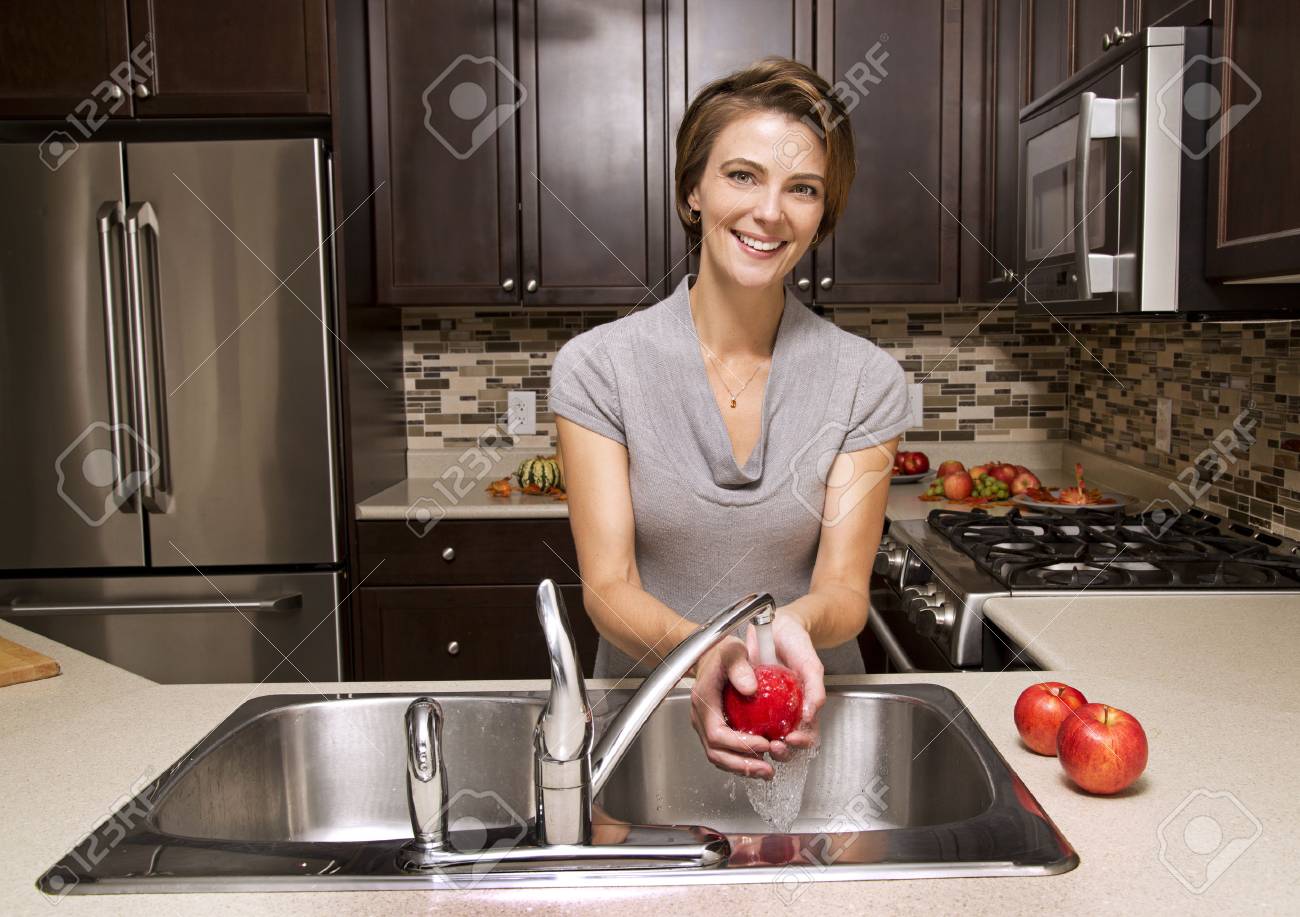 Pommes Femme A Laver Dans L Evier Cuisine A Domicile Banque D